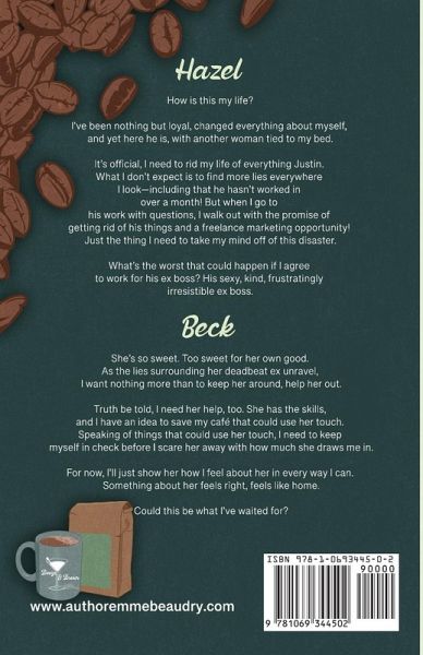 HazelHow is this my life?I've been nothing but loyal, changed everything about myself, and yet here he is, with another woman tied to my bed.It's official, I need to rid my life of everything Justin. What I don't expect is to find more lies everywhere I look-including that he hasn't worked in over a month! But when I go to his work with questions, I walk out with the promise of getting rid of his things and a freelance marketing opportunity! Just the thing I need to take my mind off of this disaster.What's the worst that could happen if I agree to work for his ex boss? His sexy, kind, frustratingly irresistible ex boss. BeckShe's so sweet. Too sweet for her own good. As the lies surrounding her deadbeat ex unravel, I want nothing more than to keep her around, help her out.Truth be told, I need her help, too. She has the skills, and I have an idea to save my café that could use her touch. Speaking of things that could use her touch, I need to keep myself in check before I scare her away with how much she draws me in.For now, I'll just show her how I feel about her in every way I can. Something about her feels right, feels like home.Could this be what I've waited for?