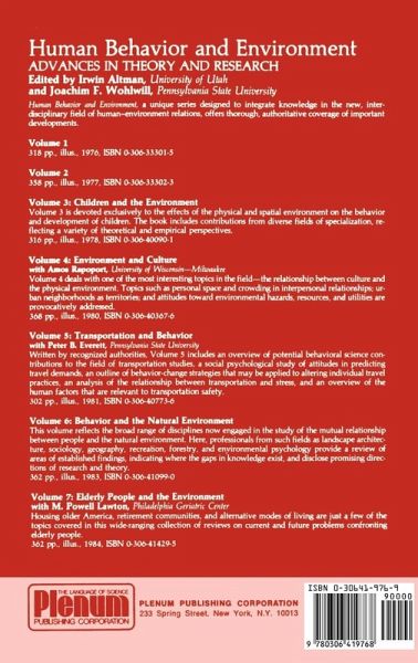 The present volume in the series focuses on homes, residences, and dwellings. Although many fields have had a long-standing interest in different aspects of home environments, the topic has recently come to the forefront in the interdisciplinary environment and behavior field. Researchers and theorists from many disciplines have begun to meet regularly, share ideas and perspectives, and move the investigation of psychological, social, and behavioral aspects of home environments to the central arena of environment and behavior studies. This volume representative-though not comprehensive attempts to provide a sampling of contemporary perspectives on the study of home environments. As in previous volumes, the authors are drawn from a variety of disciplines, including environmental design fields of architecture and planning, and from the social science fields of psychology, sociology, anthropology, and history. This diversity of authors and perspectives makes salient the principle that the study of homes in relation to behav ior requires the contributions of many disciplines. Moreover, the chap ters in this volume reflect an array of research and theoretical view points, different scales of home environments (e.g., objects and areas, the home as a whole, the home as embedded in neighborhood and communities, etc.), design and policy issues, and, necessarily, a com parative and cross-cultural perspective. Home environments are at the core of human life in most cultures, and it is hoped that the contributions to this volume display the excite ment, potential, and importance of research and theory on homes.