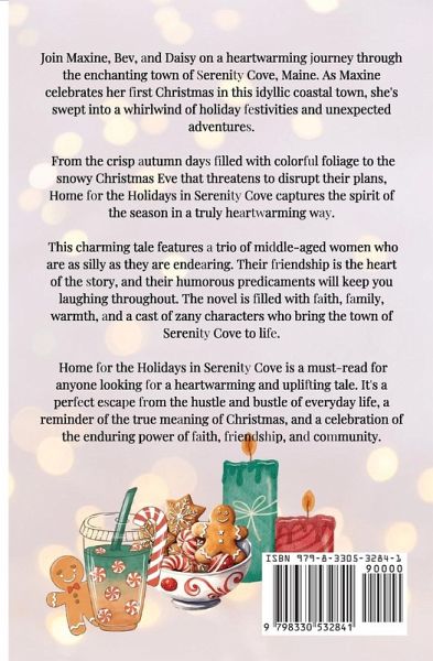 Join Maxine, Bev, and Daisy on a heartwarming journey through the enchanting town of Serenity Cove, Maine. As Maxine celebrates her first Christmas in this idyllic coastal town, she's swept into a whirlwind of holiday festivities and unexpected adventures. From the crisp autumn days filled with colorful foliage to the snowy Christmas Eve that threatens to disrupt their plans, Home for the Holidays in Serenity Cove captures the spirit of the season in a truly heartwarming way. This charming tale features a trio of middle-aged women who are as silly as they are endearing. Their friendship is the heart of the story, and their humorous predicaments will keep you laughing throughout. The novel is filled with faith, family, warmth, and a cast of zany characters who bring the town of Serenity Cove to life. Home for the Holidays in Serenity Cove is a must-read for anyone looking for a heartwarming and uplifting tale. It's a perfect escape from the hustle and bustle of everyday life, a reminder of the true meaning of Christmas, and a celebration of the enduring power of faith, friendship, and community.