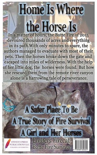 In a matter of hours, the Butte Fire of 2015 devoured thousands of acres and everything in its path. With only minutes to spare, the authors managed to evacuate with most of their pets. Then the horses broke down the gate and escaped into the miles of wilderness. With the help of her little dog, the horse were found. But how she rescued them from the remote river canyon alone is a harrowing tale of perseverance.