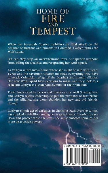 When the Savannah Charter mobilizes its final attack on the Alliance of Duathua and humans in Columbia, Caitlyn rallies the Wolf Squad. But can they stop an overwhelming force of superior weapons from killing the Duathua and recapturing her Wolf Squad? As Caitlyn settles into a home where she might be safe with Dean, Tyrell and the Savannah Charter mobilize everything they have to attack Columbia, refuge of the Duathua and human alliance. Her new Wolf Squad have decisions to make, and they look to a reluctant Caitlyn as a leader and symbol of their rebellion. Their choices lead to success and disaster as the Wolf Squad grows, and Caitlyn rejects leadership despite the pressures of her friends and the Alliance. She won't abandon her new and old friends, though. Caitlyn's simple act of defiance, in choosing Dean over the camps, has sparked a rebellion among her trapped peers. In order to save Dean and protect those she loves, she must embrace some of her more destructive powers.