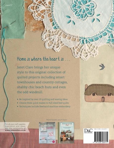 Home is where the quilt is! Quilt your own home or your dream home with this collection of inspiring designs for quilts, wall hangings and cushions. Choose from townhouses to quaint cottages, seaside beach huts, converted barns and even shepherds' huts. There's a quirky quilted home for everyone, whatever your taste! Janet's distinctive style includes lots of freehand machine embroidery, hand stitchery and appliqué. As well as the 15 main quilt projects there is also a collection of extra ideas to sew smaller projects including a keyring, decorated napkins and even a quilted felt brooch. Janet uses a combination of sewing, quilting and appliqué techniques to create her quilt patterns including freehand machine embroidery and hand quilting, which are currently both very popular sewing techniques. All the quilting and pattern templates are included at full size for instant sewing. And templates can be mixed and matched to create your unique designs.