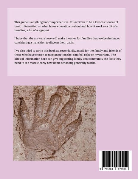 This booklet is a low-cost source of basic information on what home education is about and how it works - a bit of a baseline, a bit of a signpost. I hope that the answers here will make it easier for families that are beginning or considering a transition to discern their paths. It can be used secondarily as an aid for the family and friends of those who have chosen to take an option that can feel risky or mysterious. The bites of information here can give supporting family and community the facts they need to see more clearly how home schooling generally works.