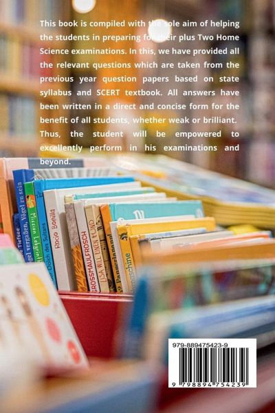 Unlock the secrete of mastering your Home Science exam with this comprehensive guide designed specifically for Higher Secondary Plus Two Home Science students. This book is compiled with previous year repeated questions and their answers in a simple format based on Kerala State syllabus and SCERT textbook. Get ready to excel and take the first step towards a successful future!