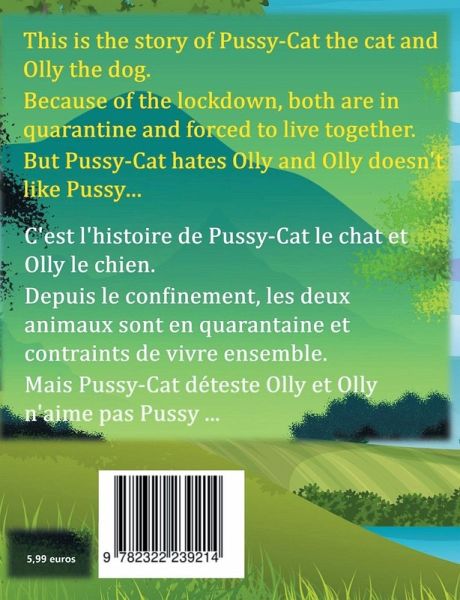 This is the story of Pussy-Cat the cat and Olly the dog.Because of the lockdown, both are in quarantine and forced to livre together.But Pussy-Cat hates Olly and Olly doesn't like Pussy...C'est l'hjstoire de Pussy-Cat le chat et Olly le chien.Depuis le confinement, les deux animaux sont en quarantine et contraints de vivre ensemble.Mais Pussy-Cat déteste Olly et Olly n'aime pas Pussy...