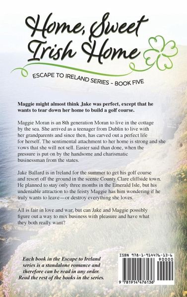 Maggie might almost think Jake was perfect, except that he wants to tear down her home to build a golf course. Maggie Moran is an 8th generation Moran to live in the cottage by the sea. She arrived as a teenager from Dublin to live with her grandparents and since then, has carved out a perfect life for herself. The sentimental attachment to her home is strong and she vows that she will not sell. Easier said than done, when the pressure is put on by the handsome and charismatic businessman from the States. Jake Ballard is in Ireland for the summer to get his golf course and resort off the ground in the scenic County Clare cliffside town. He planned to stay only three months in the Emerald Isle, but his undeniable attraction to the feisty Maggie has him wondering if he truly wants to leave-or destroy everything she loves. All is fair in love and war, but can Jake and Maggie possibly figure out a way to mix business with pleasure and have what they both really want? Each book in the Escape to Ireland series is a standalone novel and therefore can be read in any order.
