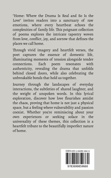 "Home: Where the Drama Is Real and So Is the Love" invites readers into a sanctuary of raw emotions, where every heartbeat echoes the complexities of family life. This poignant collection of poems explores the intricate tapestry woven from love, conflict, joy, and sorrow that defines the places we call home. Through vivid imagery and heartfelt verses, the poet captures the essence of domestic life, illuminating moments of tension alongside tender connections. Each poem resonates with authenticity, revealing the drama that unfolds behind closed doors, while also celebrating the unbreakable…mehr