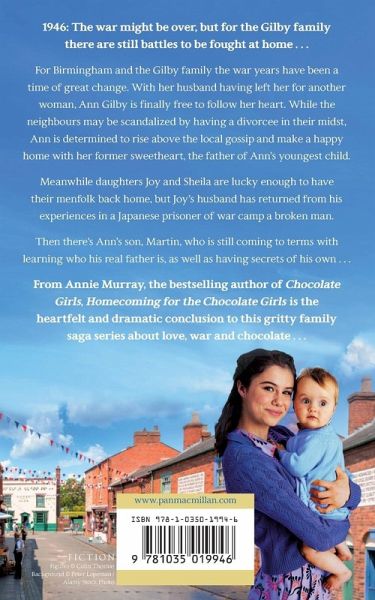 Homecoming for the Chocolate Girls is the heartfelt and dramatic conclusion to Annie Murray's Sunday Times bestselling series following the lives of the women and girls who worked at the Cadbury Factory in Birmingham.