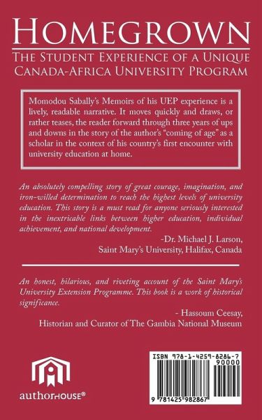 Momodou Sabally's Memoirs of his UEP experience is a lively, readable narrative. It moves quickly and draws, or rather teases, the reader forward through three years of ups and downs in the story of the author's "coming of age" as a scholar in the context of his country's first encounter with university education at home. An absolutely compelling story of great courage, imagination, and iron-willed determination to reach the highest levels of university education. This story is a must read for anyone seriously interested in the inextricable links between higher education, individual achievement, and national development. -Dr. Michael J. Larson, Saint Mary's University, Halifax, Canada An honest, hilarious, and riveting account of the Saint Mary's University Extension Programme. This book is a work of historical significance. - Hassoum Ceesay, Historian and Curator of The Gambia National Museum