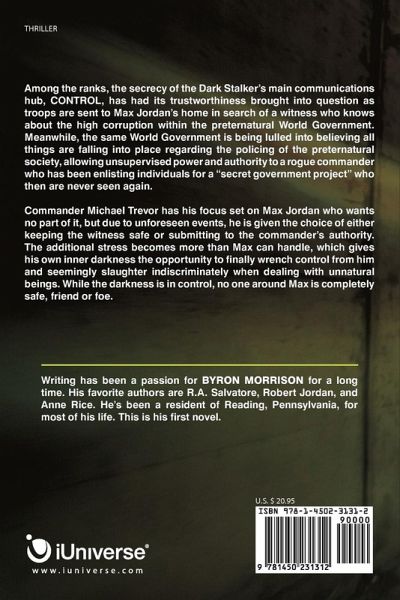 Among the ranks, the secrecy of the Dark Stalker's main communications hub, CONTROL, has had its trustworthiness brought into question as troops are sent to Max Jordan's home in search of a witness who knows about the high corruption within the preternatural World Government. Meanwhile, the same World Government is being lulled into believing all things are falling into place regarding the policing of the preternatural society, allowing unsupervised power and authority to a rogue commander who has been enlisting individuals for a "secret government project" who then are never seen again. Commander Michael Trevor has his focus set on Max Jordan who wants no part of it, but due to unforeseen events, he is given the choice of either keeping the witness safe or submitting to the commander's authority. The additional stress becomes more than Max can handle, which gives his own inner darkness the opportunity to finally wrench control from him and seemingly slaughter indiscriminately when dealing with unnatural beings. While the darkness is in control, no one around Max is completely safe, friend or foe.