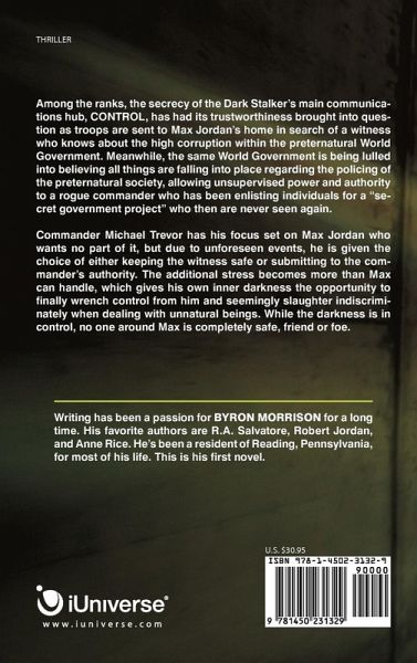 Among the ranks, the secrecy of the Dark Stalker's main communications hub, CONTROL, has had its trustworthiness brought into question as troops are sent to Max Jordan's home in search of a witness who knows about the high corruption within the preternatural World Government. Meanwhile, the same World Government is being lulled into believing all things are falling into place regarding the policing of the preternatural society, allowing unsupervised power and authority to a rogue commander who has been enlisting individuals for a "secret government project" who then are never seen again. Commander Michael Trevor has his focus set on Max Jordan who wants no part of it, but due to unforeseen events, he is given the choice of either keeping the witness safe or submitting to the commander's authority. The additional stress becomes more than Max can handle, which gives his own inner darkness the opportunity to finally wrench control from him and seemingly slaughter indiscriminately when dealing with unnatural beings. While the darkness is in control, no one around Max is completely safe, friend or foe.