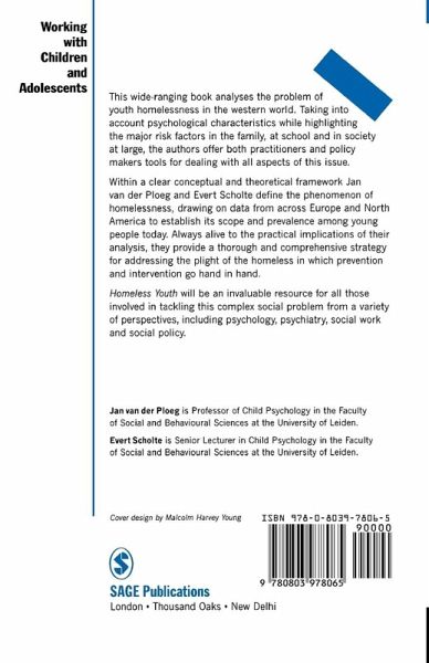 This wide-ranging book analyzes the problem of youth homelessness in the western world. Taking into account psychological characteristics while highlighting the major risk factors in the family, at school and in society at large, the authors offer both practitioners and policymakers tools for dealing with all aspects of this issue. Within a clear conceptual and theoretical framework, Jan van der Ploeg and Evert Scholte define the phenomenon of homelessness, drawing on data from across Europe and North America to establish its scope and prevalence among young people today. Always alive to the practical implications of their analysis, they provide a thorough and comprehensive strategy for addressing the plight of the homeless in which prevention and intervention go hand-in-hand.