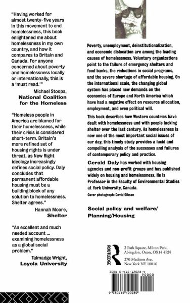 The causes of homelessness are disputed by both Right and Left. But, few would argue that life on the streets is anything other than dangerous and debilitating. Unemployment, deinstitutionalisation, abuse in the home are among the stories the homeless tell. Voluntary organisations point to the failure of emergency shelters and food banks, the cut-backs in social programmes and the severe shortage of affordable housing. On the international scale, the changing global system has placed new demands on the economies of Europe and north America which have impacted on resources, employment and even political will. This book is the first comprehensive international study of homelessness. The author argues that the category of the homeless must itself be broadened, to encompass those chronically without shelter to those in immediate risk of dispossession, if homelessness is to be tackled effectively (before and after it happens) by public policy, voluntary organisations and the individuals themselves.