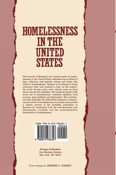 This is the second of Momeni's two-volume series on homelessness in the United States. While volume I concentrated on the statewide distribution, variations, trends, and characteristics of the homeless population, the present volume addresses the problem of data collection and specific causes and issues that relate to homelessness. Unique in its attempt to bring systematic data and analysis to bear on the subject, this groundbreaking study focuses upon such critical areas as drug abuse among the homeless, the housing situation that gives rise to homelessness, homeless children, food sources, and problems of employment. Although the contributors approach the topic from a number of different perspectives, they are united in their conclusion that realistic solutions to the problem of homelessness rest not in establishing new and dramatic programs, but rather in forging links between government and private agencies to create a system-wide response to the multiple needs of the homeless population. In addition to exploring the serious and persistent problems homeless people face, the contributors highlight the difficulties inherent in measuring the extent of homelessness accurately, concluding that efforts to do so are likely to produce an undercount. A number of chapters provide a clearer picture of the homeless population in America by examining both the socioeconomic and demographic correlates and the social-psychiatric dimensions of homelessness. Finally, the contributors compare and contrast the characteristics of homelessness and the methods of dealing with the problem in the United States, Canada, and Great Britain. Two concluding essays provide an overview of homelessness on the national level and propose public policies likely to be most effective in reducing homelessness. Numerous tables and figures illustrate points made in the text. Students of social sciences, social practitioners, and public policymakers will find Homelessness in America provocative reading, and a reliable source of data and analysis.