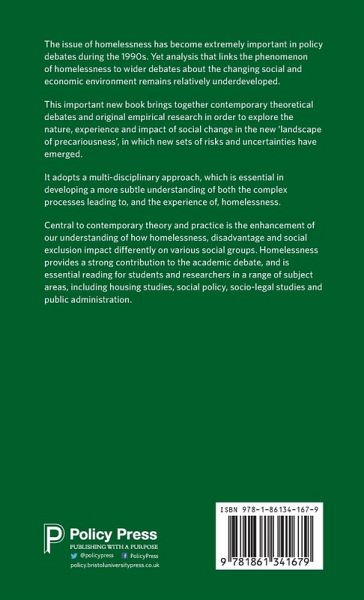 Analysis that links the phenomenon of homelessness to wider debates about the changing social and economic environment remains relatively underdeveloped. This important book brings together contemporary debates and empirical research in order to explore the nature, experience and impact of social change in the context of risks and uncertainties.