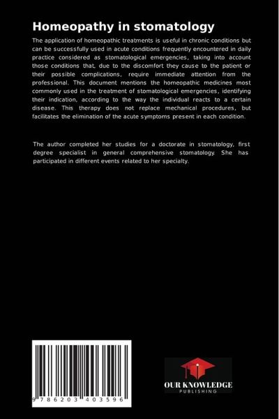 The application of homeopathic treatments is useful in chronic conditions but can be successfully used in acute conditions frequently encountered in daily practice considered as stomatological emergencies, taking into account those conditions that, due to the discomfort they cause to the patient or their possible complications, require immediate attention from the professional. This document mentions the homeopathic medicines most commonly used in the treatment of stomatological emergencies, identifying their indication, according to the way the individual reacts to a certain disease. This therapy does not replace mechanical procedures, but facilitates the elimination of the acute symptoms present in each condition.