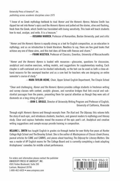 Dramatic and accessible selections from The Iliad, The Odyssey, and the Homeric Hymns make this an ideal text for mythology, literature, and composition study at all levels. With full introduction, background material, analytical and creative writing suggestions, sample essays, glossaries, and complete indexes, this book is a teaching jewel.