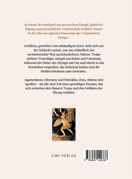 In einem Wechselspiel aus heroischem Kampf, göttlicher Fügung und menschlicher Leidenschaft entfaltet Homer in der Ilias ein episches Panorama des Trojanischen Krieges. Achilleus, getrieben von unbändigem Zorn, zieht sich aus der Schlacht zurück, nur um schließlich mit zerstörerischer Wut zurückzukehren. Hektor, Trojas edelster Verteidiger, kämpft um Ruhm und Vaterland, während die Götter des Olymps mit List und Macht in das Geschehen eingreifen, das Schicksal lenken und die Helden belohnen oder bestrafen. Agamemnon, Odysseus und Patroklos, Zeus, Athene und Apollon - sie alle sind Teil eines gewaltigen Dramas, das sich zwischen den Mauern Trojas und den Gefilden des Olymp entfaltet. Die Welt der Ilias ist eine von Ehre und Rache, von Ruhm und Untergang - untrennbar verknüpft mit dem unaufhaltsamen Lauf des Schicksals. Mit kunstvoller Bildsprache erschafft Homer ein Werk, das die Grundfragen menschlicher Existenz verhandelt. Mit meisterhaftem Gespür für Rhythmus und Klang bewahrt Voß in seiner Übersetzung die ursprüngliche Kraft der Hexameter und macht die archaische Welt der Griechen lebendig: die donnernden Streitwagen, die eifersüchtigen Götter, den dröhnenden Kampflärm. Hier frisch aufgelegt als Taschenbuch in gut lesbarer Schriftgröße. Homer. Ilias. Übersetzt von Johann Heinrich Voß. Entstehung: Vermutlich 8. oder 7. Jahrhundert v. Chr. Erstdruck der Übersetzung von Johann Heinrich Voß: Johann Friedrich Hammerich, Altona 1793. Durchgesehener Neusatz, der Text dieser Ausgabe folgt: Insel Verlag, Frankfurt am Main 1990. Vollständige Neuausgabe, Göttingen 2025. LIWI Literatur- und Wissenschaftsverlag