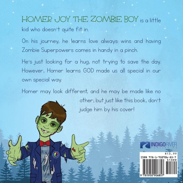 Homer Joy the Zombie Boy is a little kid that doesn't quite fit in. On his journey, he learns love always wins and having Zombie Superpowers comes in handy in a pinch. He's just looking for a hug, not trying to save the day. However, Homer learns GOD made us all special in our own special way. Homer may look different, and he may be made like no other, but just like this book, don't judge him by his cover!