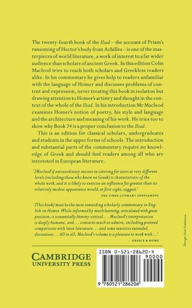 The twenty-fourth book of the Iliad is one of the masterpieces of world literature, a work of interest to a far wider audience than scholars of ancient Greek. In his introduction Colin Macleod examines Homer's notion of poetry, his style and language and the architecture and meaning of his work.