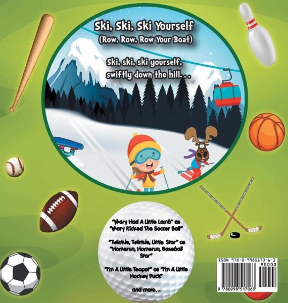 This children's book transforms traditional nursery rhymes into clever sports nursery rhymes with fun illustrations for the entire family to enjoy. You will discover "Twinkle, Twinkle, Little Star" as "Homerun, Homerun, Baseball Star", "Mary Had A Little Lamb" as "Mary Kicked the Soccer Ball", "I'm A Little Teapot as "I'm A Little Hockey Puck" and many more. Homerun, Homerun, Baseball Star (Twinkle, Twinkle, Little Star) Homerun, homerun, baseball star, you hit the ball oh so far. Over the moon in the sky, watch that little baseball fly. Homerun, homerun baseball star, you hit the ball oh so…mehr