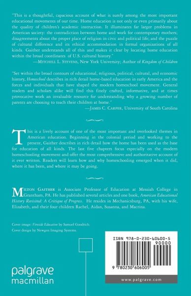 This is a lively account of one of the most important and overlooked themes in American education. Beginning in the colonial period and working to the present, Gaither describes in rich detail how the home has been used as the base for education of all kinds. The last five chapters focus especially on the modern homeschooling movement and offer the most comprehensive and authoritative account of it ever written. Readers will learn how and why homeschooling emerged when it did, where it has been, and where it may be going. Please visit Gaither's blog here: http://gaither.wordpress.com/homeschool-an-american-history