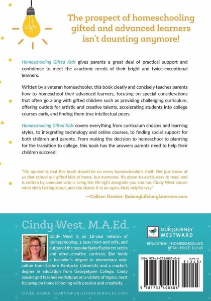 The prospect of homeschooling gifted and advanced learners isn't daunting anymore! Homeschooling Gifted Kids gives parents a great deal of practical support and confidence to meet the academic needs of their bright and twice-exceptional learners. Written by a veteran homeschooler, this book clearly and concisely teaches parents how to homeschool their advanced learners, focusing on special considerations that often go along with gifted children such as providing challenging curriculum, offering outlets for artistic and creative talents, accelerating students into college courses early, and finding them true intellectual peers. Homeschooling Gifted Kids covers everything from curriculum choices and learning styles, to integrating technology and online courses, to finding social support for both children and parents. From making the decision to homeschool to planning for the transition to college, this book has the answers parents need to help their children succeed!