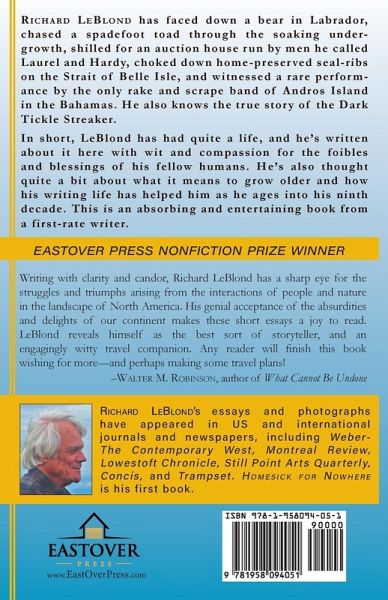 Richard LeBlond has had quite a life-he's been stranded on a Montana mountaintop, chased by a bear in Labrador, splashed through torrential downpours to document the unsuccessful mating game of the spadefoot toad, crossed a union picket line as a teenager in Oregon, and wrangled errant lovers on a Cape Cod dune as a park ranger. LeBlond travels across North America with his eyes and ears open, and reports in these essays with clarity and humor on the natural world and the two- and four-legged animals who inhabit it. His wit and compassion for the foibles and blessings of being human shine through in each chapter. He also shares what he has learned about the supportive role writing can play in the aging process.