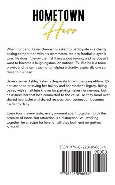 When tight end Xavier Brennan is asked to participate in a charity baking competition with his teammates, the pro football player is torn. He doesn't know the first thing about baking, and he doesn't want to become a laughingstock on national TV. But he is a team player, and he can't say no to helping a charity, especially one so close to his heart. ¿Bakery owner Ashley Yates is desperate to win the competition. It's her last hope at saving her bakery and her mother's legacy. Being paired with an athlete known for partying makes her nervous, but he assures her that he's committed to the cause. As they bond over shared heartache and shared recipes, their connection becomes harder to deny. ¿Every touch, every taste, every moment spent together holds the promise of more. But attraction is a distraction. Will working together be a recipe for love, or will they both end up getting burned? ¿Hometown Hero was originally featured in the Love, Philly anthology, and has since been expanded.