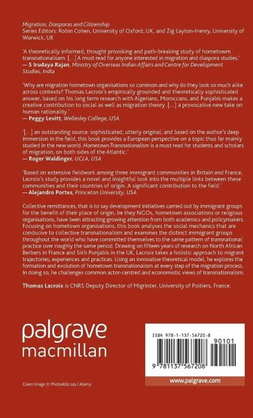 "This monograph synthesizes and builds on Lacroix's long-term research on three diasporas: Algerian Kabyles and Moroccan Chleuhs (both Berber subgroups) living in France and Indian Sikhs living in the United Kingdom. ... This book is rich and insightful, and I recommend it as a resource for migration scholars (faculty and postgraduate students, at least), both theoretically and empirically. For policymakers it points (correctly) to the ambiguities and downright muddle of policy toward migrants in both home and host countries." (Martin Evans, International Migrant Review, Vol. 51 (1), 2017)