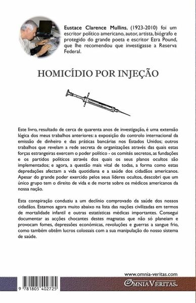Este livro, resultado de cerca de quarenta anos de investigação, é uma extensão lógica dos meus trabalhos anteriores: a exposição do controlo internacional da emissão de dinheiro e das práticas bancárias nos Estados Unidos; outros trabalhos que revelam a rede secreta de organizações através das quais estas forças estrangeiras exercem o poder político - os comités secretos, as fundações e os partidos políticos através dos quais os seus planos ocultos são implementados; e agora, a questão mais vital de todas, a forma como estas depredações afectam a vida quotidiana e a saúde dos cidadãos americanos. Apesar do grande poder exercido pelos seus líderes ocultos, descobri que um único grupo tem o direito de vida e de morte sobre os médicos americanos da nossa nação.Esta conspiração conduziu a um declínio comprovado da saúde dos nossos cidadãos. Estamos agora muito abaixo na lista das nações civilizadas em termos de mortalidade infantil e outras estatísticas médicas importantes. Consegui documentar as acções chocantes destes magnatas que não só planeiam e provocam fomes, depressões económicas, revoluções e guerras a sangue frio, como também obtêm lucros colossais com a sua manipulação do nosso sistema de saúde.