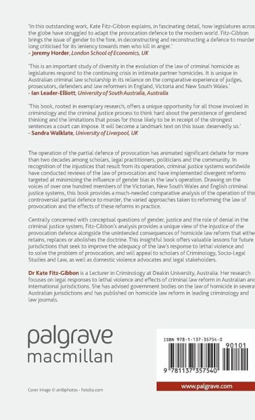 'In this outstanding work, Kate Fitz-Gibbon explains, in fascinating detail, how legislatures across the globe have struggled to adapt the provocation defence to the modern world. Fitz-Gibbon brings the issue of gender to the fore, in deconstructing and reconstructing a defence to murder long criticised for its leniency towards men who kill in anger.' - Professor Jeremy Horder