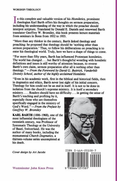 In this complete and valuable version of his Homiletics, renowned theologian Karl Barth's offers his thoughts on sermon preparation, including his understanding of the way in which the preacher should interpret scripture. Translated by Donald E. Daniels and renowned Barth translator Geoffrey W. Bromiley, this book presents lecture materials...