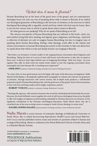 What does it mean to flourish? Human flourishing lies at the heart of the good news of the gospel, and yet contemporary theologies know not only one way of speaking about what it means to flourish. If we embed our theological grammars of flourishing in the doctrine of salvation, as the doctrine in which theological flourishing talk is arguably rooted and from which rich fruit may be borne, there is not one but various ways in which to speak about what it means to flourish. Yet what governs our speaking? Why do we speak of flourishing as we do? The various conceptions of human flourishing that are outlined in this book - piety, joy, and comfort; being fully alive, healing, and dignity; grace, happiness, and blessing - represent a collection of attempts not only to imagine human flourishing, but also to imagine ways of speaking about human flourishing. Perhaps what theology could offer to the vibrant and robust conversations on human flourishing lies exactly in the reminder to take care about how we speak about that which is truly and deeply human: our longing to flourish.