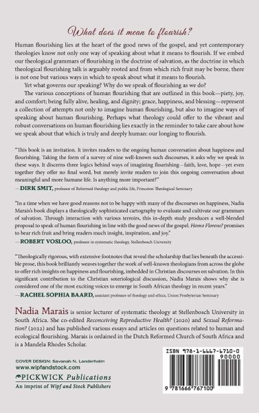 What does it mean to flourish? Human flourishing lies at the heart of the good news of the gospel, and yet contemporary theologies know not only one way of speaking about what it means to flourish. If we embed our theological grammars of flourishing in the doctrine of salvation, as the doctrine in which theological flourishing talk is arguably rooted and from which rich fruit may be borne, there is not one but various ways in which to speak about what it means to flourish. Yet what governs our speaking? Why do we speak of flourishing as we do? The various conceptions of human flourishing that are outlined in this book - piety, joy, and comfort; being fully alive, healing, and dignity; grace, happiness, and blessing - represent a collection of attempts not only to imagine human flourishing, but also to imagine ways of speaking about human flourishing. Perhaps what theology could offer to the vibrant and robust conversations on human flourishing lies exactly in the reminder to take care about how we speak about that which is truly and deeply human: our longing to flourish.
