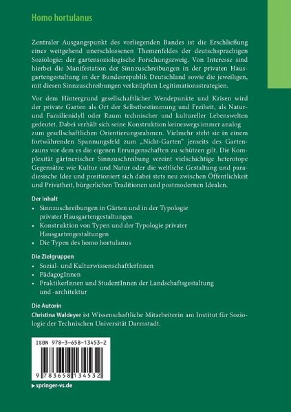 Zentraler Ausgangspunkt des vorliegenden Bandes ist die Erschließung eines weitgehend unerschlossenen Themenfeldes der deutschsprachigen Soziologie: der gartensoziologische Forschungszweig. Von Interesse sind hierbei die Manifestation der Sinnzuschreibungen in der privaten Hausgartengestaltung in der Bundesrepublik Deutschland sowie die jeweiligen,