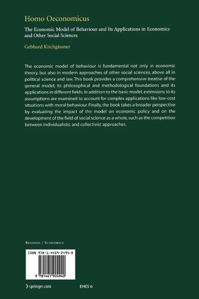 The economic model of behaviour is fundamental not only in economic theory, but also in modern approaches of other social sciences, above all in political science and law. This book provides a comprehensive treatise of the general model, its philosophical and methodological foundations and its applications in different fields. In addition to the basic model, extensions to its assumptions are examined to account for complex applications like low-cost situations with moral behaviour. Finally, the book takes a broader perspective by evaluating the impact of the model on economic policy and on the development of the field of social science as a whole, such as the competition between individualistic and collectivist approaches.