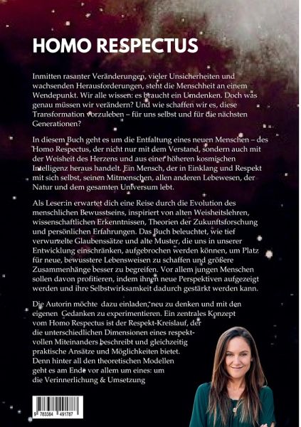 Der Homo Respectus ist eine Reise durch die Evolution des Bewusstseins und bietet eine tiefgehende Erkundung der menschlichen Entwicklung. In diesem Buch werden alte Weisheitslehren mit modernen wissenschaftlichen Erkenntnissen und Ideen der Zukunftsforschung verknüpft, um ein neues Paradigma von Herzens- und Bewusstseinsbildung zu formen. Das Konzept des Homo Respectus - eine Idee der bewussten Weiterentwicklung des Homo Sapiens Sapiens, zielt darauf ab, eine ganzheitlichere Lebensweise zu fördern. Es geht darum, neue Ideen zuzulassen und alte Gedankenmuster aufzubrechen. Für eine Lebensweise, die Körper, Geist, Seele und vor allem das Herz miteinbezieht und auf Werten, wie Respekt und Empathie aufbaut. Das Buch ist nicht nur eine Reflexion von aktuellen Herausforderungen der Menschheit, sondern bietet auch praktische Anleitungen für einen bewussteren Umgang - mit sich selbst, mit anderen Menschen, anderen Lebewesen, der Natur und der gesamten Schöpfung. Es geht um Erkenntnis, um Verinnerlichung und um Vorleben. Für uns selbst und für die nächste Generation.