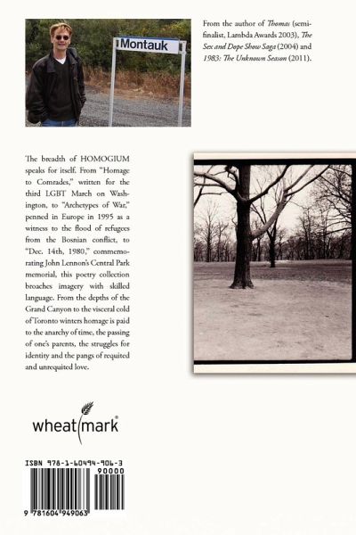 The breadth of Homogium speaks for itself. From "Homage to Comrades," written for the third LGBT March on Washington, to "Archetypes of War," penned in Europe in 1995 as a witness to the flood of refugees from the Bosnian conflict, to "Dec. 14th, 1980," commemorating John Lennon's Central Park memorial, this poetry collection broaches imagery with skilled language. From the depths of the Grand Canyon to the visceral cold of Toronto winters homage is paid to the anarchy of time, the passing of one's parents, the struggles for identity and the pangs of requited and unrequited love. Tobias Maxwell is the author of two novels, The Sex and Dope Show Saga and Thomas, and a memoir, 1983: The Unknown Season. His undergraduate alma maters include St. John's College in Annapolis, Maryland, and the University of California at Riverside. He has a master of science in counseling from California State University, Sacramento.