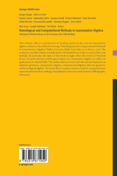 This volume collects contributions by leading experts in the area of commutative algebra related to the INdAM meeting "Homological and Computational Methods in Commutative Algebra" held in Cortona (Italy) from May 30 to June 3, 2016 . The conference and this volume are dedicated to Winfried Bruns on the occasion of his 70th birthday. In particular, the topics of this book strongly reflect the variety of Winfried Bruns' research interests and his great impact on commutative algebra as well as its applications to related fields. The authors discuss recent and relevant developments in algebraic…mehr