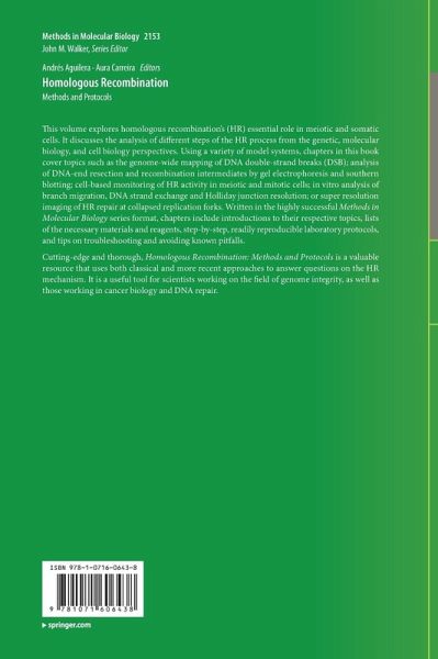 Cutting-edge and thorough, Homologous Recombination: Methods and Protocols is a valuable resource that uses both classical and more recent approaches to answer questions on the HR mechanism. It is a useful tool for scientists working on the field of genome integrity, as well as those working in cancer biology and DNA repair.