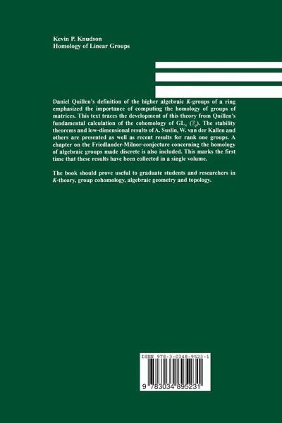 "A book for graduates and researchers in K-theory, cohomology, algebraic geometry and topology. The theme is the development of the computing of the homology of the groups of matrices from Daniel Quillen's definitions of the higher algebraic K-groups. Stability theorems, low-dimensional results and the Friedlander-Milnor conjecture are discussed in this monograph."