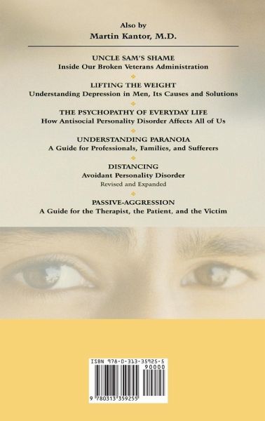 Martin Kantor, MD is a Harvard psychiatrist who has been in full private practice in Boston and New York City, and active in residency training programs at several hospitals, including Massachusetts General and Beth Israel in New York. He also served as Assistant Clinical Professor of Psychiatry at Mount Sinai Medical School and as Clinical Assistant Professor of Psychiatry at the University of Medicine and Dentistry of New Jersey-New Jersey Medical School. He is currently a full-time medical author, the author of more than a dozen other books, including Homophobia, Second Edition (Praeger 2009); Uncle Sam's Shame: Inside the Veteran's Administration (Praeger 2008); Lifting the Weight: Understanding Depression in Men: Its Causes and Solutions (Praeger 2007); The Psychopathy of Everyday Life: How Antisocial Personality Disorder Affects All of Us (Praeger, 2006); Understanding Paranoia: A Guide for Professional, Families, and Sufferers (Praeger 2004); Distancing: Avoidant Personality Disorder, Revised and Expanded (Praeger, 2003), Passive-Aggression: A Guide for the Therapist, the Patient, and the Victim (Praeger, 2002), Treating Emotional Disorder in Gay Men (Praeger, 1999), and Homophobia (Praeger, 1998).