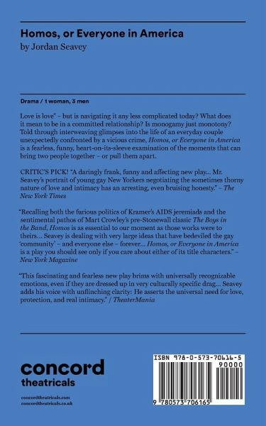 "Love is love" - but is navigating it any less complicated today? What does it mean to be in a committed relationship? Is monogamy just monotony? Told through interweaving glimpses into the life of an everyday couple unexpectedly confronted by a vicious crime, Homos, or Everyone in America is a fearless, funny, heart-on-its-sleeve examination of the moments that can bring two people together - or pull them apart.