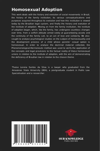 This work deals with the history and evolution of social movements in Brazil, the history of the family institution, its various conceptualisations and purposes acquired throughout its evolution and how this institution is viewed today by the Brazilian legal system, and finally the history and evolution of the institute of adoption. Moving on from the family institution, the institute of adoption began, which, like the family, has undergone countless changes over time, from a selfish attitude aimed solely at guaranteeing assets and the continuity of the family cult, to an act of love and solidarity. We also sought to analyse psychological studies on the subject of homosexuality and the development process of a child whose parents' sexual option is homosexual. In order to analyse the doctrinal material collected, the Phenomenological-Hermeneutic method was used to verify the application of the concepts and legal provisions to the factual reality of these homosexual unions in relation to the institute of adoption, with the aim of demonstrating the deficiency of Brazilian law in relation to the chosen theme.