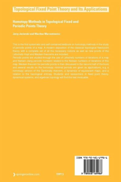 From the reviews of the first edition: "This book contains an up-to-date exposition of the topological fixed and periodic point theories associated with the names of Lefschetz and Hopf and of Nielsen. The phrase "homotopy methods" in its title refers to the fact that the foundations of these theories lie in algebraic topology and thus depend on tools that are homotopy invariant.The feature that most sets the book apart from its predecessors is the presentation, occupying about one half of its more than 300-page length, of the theory of periodic points that is based on algebraic topology. A chapter on the sequence of integers that arise as the Lefschetz numbers of the iterates of a map informs the reader about what is known concerning such sequences and how this knowledge leads to information regarding its periodic points. The most distinctive chapters are concerned with the Nielsen theory of periodic points and with homotopy minimal periods. The first of these chapters contains a complete exposition of the first author's recent proof of the Halpern Conjecture, a result that demonstrates that the Nielsen periodic point number is a sharp estimator in an appropriate sense. The second presents what is now known, much of the more recent advances due to these authors, about the set of integers that have the property that all maps homotopic to the given map have periodic points of minimal periods that are the integers in the set.The book contains useful scholarly apparatus: an extensive bibliography, a reasonably detailed index, even an index of the authors that are mentioned in the text and, particularly welcome, an index of symbols. The authors have collected a substantial amount of attractive mathematics, some of it not easily accessible, and presented it in a well-organized manner. Homotopy Methods in Topological Fixed and Periodic Point Theory is a very welcome addition to the literature of topological fixed point theory."(Professor R.F. Brown, University of California, Los Angeles, USA) "The book is very well written and makes for an excellent introduction to the subject of Nielson theory with a strong emphasis on the estimation of periodic point behavior of a given map. The book is suitable as a text for an advanced graduate level course, or for a mathematician interested in becoming acquainted with ... current research topics involving Lefschetz and Nielson theories. ... the book will also be a useful reference tool for researchers in fixed point theory and in dynamical systems." (Michael R. Kelly, Mathematical Reviews, Issue 2006 i) "This is an up-to-date exposition of the topological fixed and periodic point theories of selfmaps of finite polyhedra. ... There is a carefully selected bibliography, an index of the authors mentioned in the text as well as a traditional index and also an index of symbols. ... This fine book is the first extensive exposition of this sort of topological fixed point theory and related topics since Jiang's lecture notes of 1983 ... ." (Robert F. Brown, Zentralblatt MATH, Vol. 1085, 2006)
