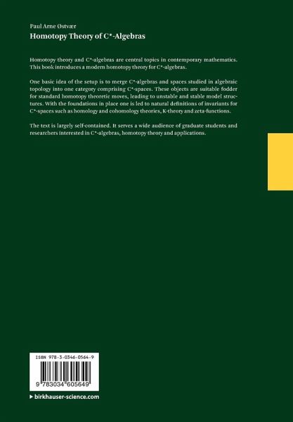 Homotopy theory and C_ algebras are central topics in contemporary mathematics. This book introduces a modern homotopy theory for C_-algebras. One basic idea of the setup is to merge C_-algebras and spaces studied in algebraic topology into one category comprising C_-spaces. These objects are suitable fodder for standard homotopy theoretic moves, leading to unstable and stable model structures. With the foundations in place one is led to natural definitions of invariants for C_-spaces such as homology and cohomology theories, K-theory and zeta-functions.The text is largely self-contained. It serves a wide audience of graduate students and researchers interested in C_-algebras, homotopy theory and applications.