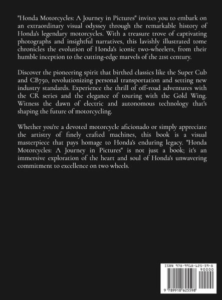 "Honda Motorcycles: A Journey in Pictures" invites you to embark on an extraordinary visual odyssey through the remarkable history of Honda's legendary motorcycles. With a treasure trove of captivating photographs and insightful narratives, this lavishly illustrated tome chronicles the evolution of Honda's iconic two-wheelers, from their humble inception to the cutting-edge marvels of the 21st century. Discover the pioneering spirit that birthed classics like the Super Cub and CB750, revolutionizing personal transportation and setting new industry standards. Experience the thrill of off-road adventures with the CR series and the elegance of touring with the Gold Wing. Witness the dawn of electric and autonomous technology that's shaping the future of motorcycling. Whether you're a devoted motorcycle aficionado or simply appreciate the artistry of finely crafted machines, this book is a visual masterpiece that pays homage to Honda's enduring legacy. "Honda Motorcycles: A Journey in Pictures" is not just a book; it's an immersive exploration of the heart and soul of Honda's unwavering commitment to excellence on two wheels.