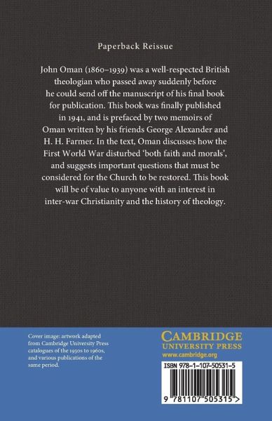 John Oman (1860-1939) was a well-respected British theologian who passed away suddenly before he could send off the manuscript of his final book for publication. This book was finally published in 1941, and is prefaced by two memoirs of Oman written by his friends George Alexander and H. H. Farmer. In the text, Oman discusses how the First World War disturbed 'both faith and morals', and suggests important questions that must be considered for the Church to be restored. This book will be of value to anyone with an interest in inter-war Christianity and the history of theology.