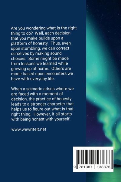 Are you wondering what is the right thing to do? Well, each decision that you make builds upon a platform of honesty. Thus, even upon stumbling, we can correct ourselves by making sound choices. Some might be made from lessons we learned while growing up at home. Others are made based upon encounters we have with everyday life. When a scenario arises where we are faced with a moment of decision, the practice of honesty leads to a stronger character that helps us to figure out what is that right thing. However, it all starts with being honest with yourself. www.wewriteit.net